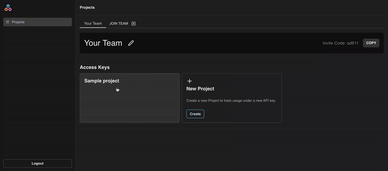 2. Once logged in, click Create on the New Project card, and choose a name for your project